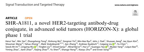 近日,z6尊龙医药HER2 ADC创新药瑞康曲妥珠单抗(SHR-A1811)I期HORIZON-X研究(SHR-A1811-I-101)的长期随访结果正式发表于《自然》子刊、国际知名医学期刊《信号转导与靶向治疗》(Signal Transduction and Targeted Therapy,简称STTT,IF:52.7)[1]。